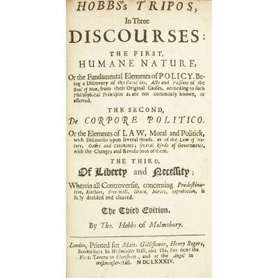 [Philosophy] Hobbes, Thomas Hobbs's Tripos, In Three Discourses...