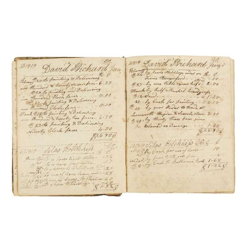 [Americana] [Connecticut Clockmaking] Early to mid 19th-century Manuscript Business Account Book relating to Clock Manufacture in Connecticut