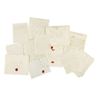 Sizes vary, many with wax seals or remnants of wax seals. Just three days after the infamous storming of the Bastille, Charles Philippe de France, comte d’Artois—brother of King Louis XVI and brother-in-law of Queen Marie Antoinette—hastily fled the kingdom. What followed was an exile of more than 26 years across the different courts of Europe, from which the comte d’Artois acted as a spokesman for the declining French monarchy. While in exile, he corresponded with his faithful friend, Joseph Hyacinthe François-de-Paule de Rigaud, comte de Vaudreuil, who had also left France in July, 1789. The comte d’Artois travelled first to Savoy, and then settled with his wife’s family in Turin, Italy. Due to tremendous distress and financial needs he was constantly on the move, seeking help from various European courts. The archive brings to life the comte’s life in exile—from the everyday to the profound. In a letter dated December 25, 1792, reacting to the news of the daily executions in Paris, he summarizes the situation to his friend: “It is more appalling than ever. The unfortunate King is being tried at present and beyond a doubt will be condemned. Perhaps the Convention will wish to keep him as hostage, but it is still very doubtful that the Convention can shield him from the rage of the people”. Several months later, after the king had indeed been executed and after learning about “the cruel death of the queen [Marie-Antoinette]”, the comte forewarns his friend: “I hope for nothing but vengeance”. Written from numerous cities such as Liege, London, Dusseldorf, St. Petersburg, Namur, Rotterdam, and Edinburgh, these letters offer a formidable report of the tumultuous events that took place in France during this period, and mirror his brother and sister-in-law’s difficult situation, especially in the years 1792 and 1793. In 1814, after two decades of exile, the comte returned to France. Following Napoleon’s abdication in 1815, the Bourbon monarchy was restored, and Charles’ brother ascended the throne as Louis XVIII. After Louis’ death in 1824, Charles became King and was crowned Charles X. An invaluable first-person source of information regarding one of France’s and Europe’s most troubled periods.