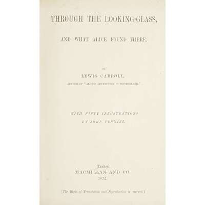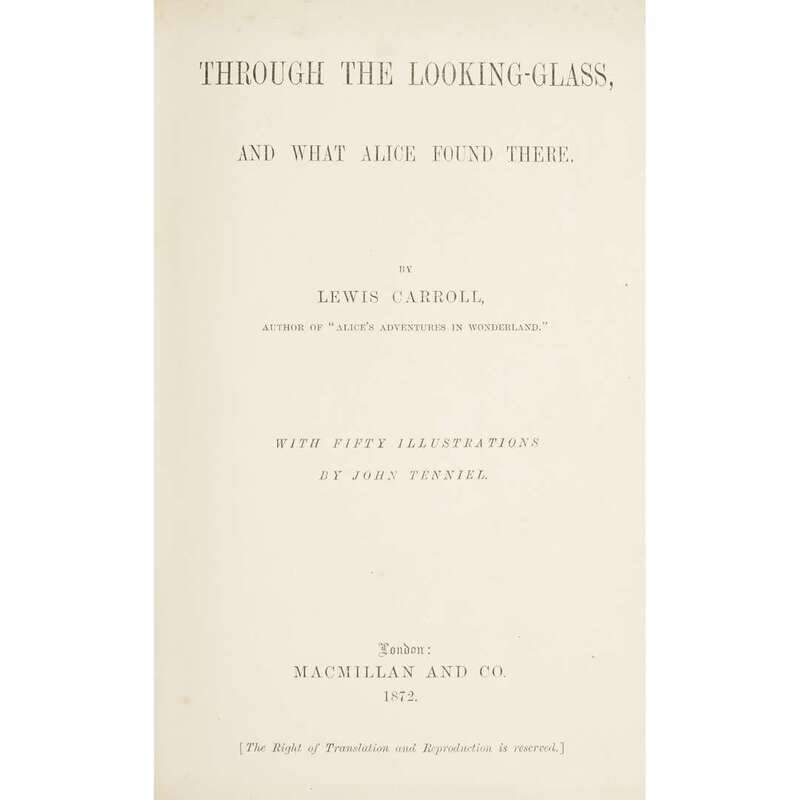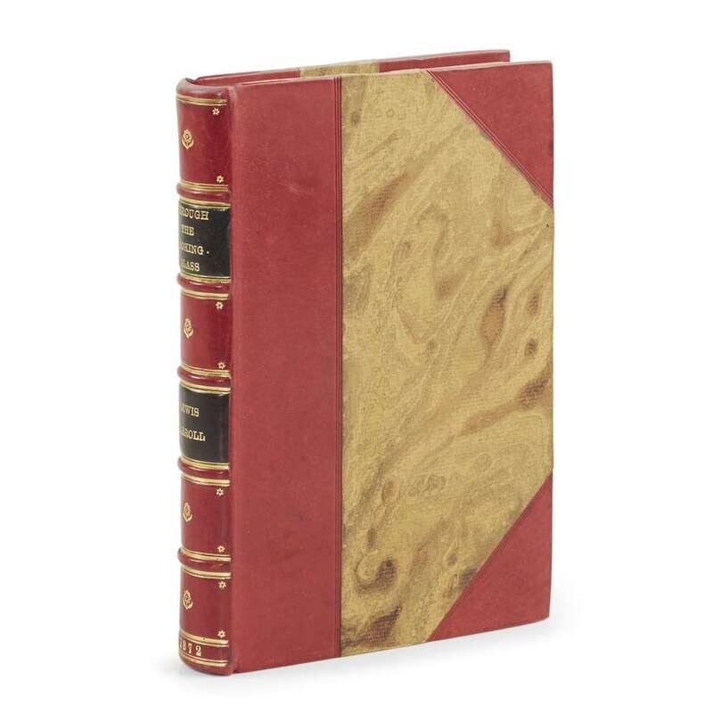 London: Macmillan & Co., 1872. First edition, first printing with "wade" to p. 21. 8vo. (x), (225), [i] pp. ads, colophon. Illustrated by John Tenniel. Finely bound in three-quarter red calf over brown marbled boards; stamped in gilt to spine with black spine label; text block edges gilt; brown marbled endpapers, book-plate to front paste-down; scattered foxing to text block.