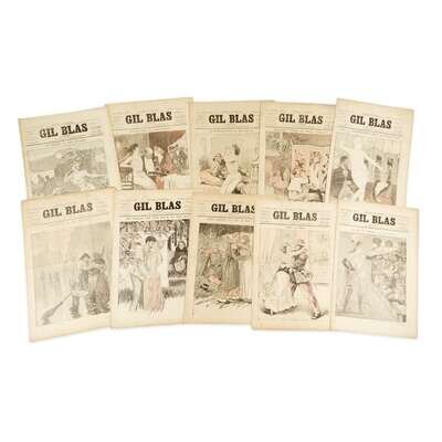 (Paris), 1891-1900. In 322 issues. Folio. Illustrated with cover designs by Théophile-Alexander Steinlen, and numerous color illustrations throughout each issue. Original color pictorial self wrappers; lightly to moderately toned, scattered spotting, very occasional small paper faults.
