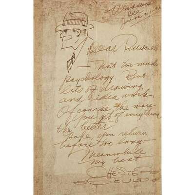 [Children's & Illustrated] Gould, Chester Autograph Letter, signed, with an original illustration of Dick Tracy