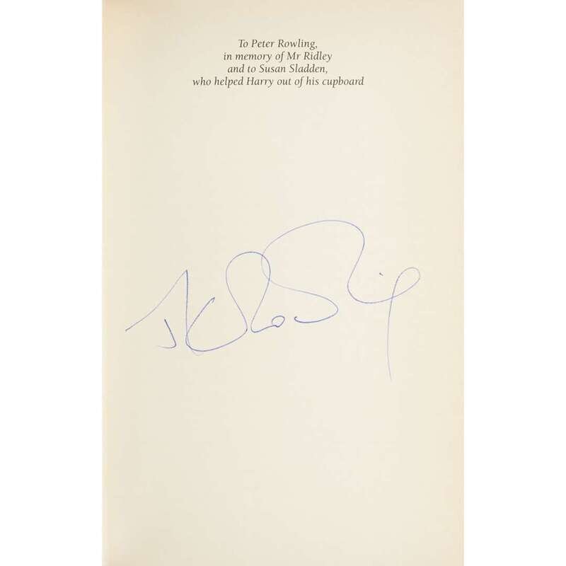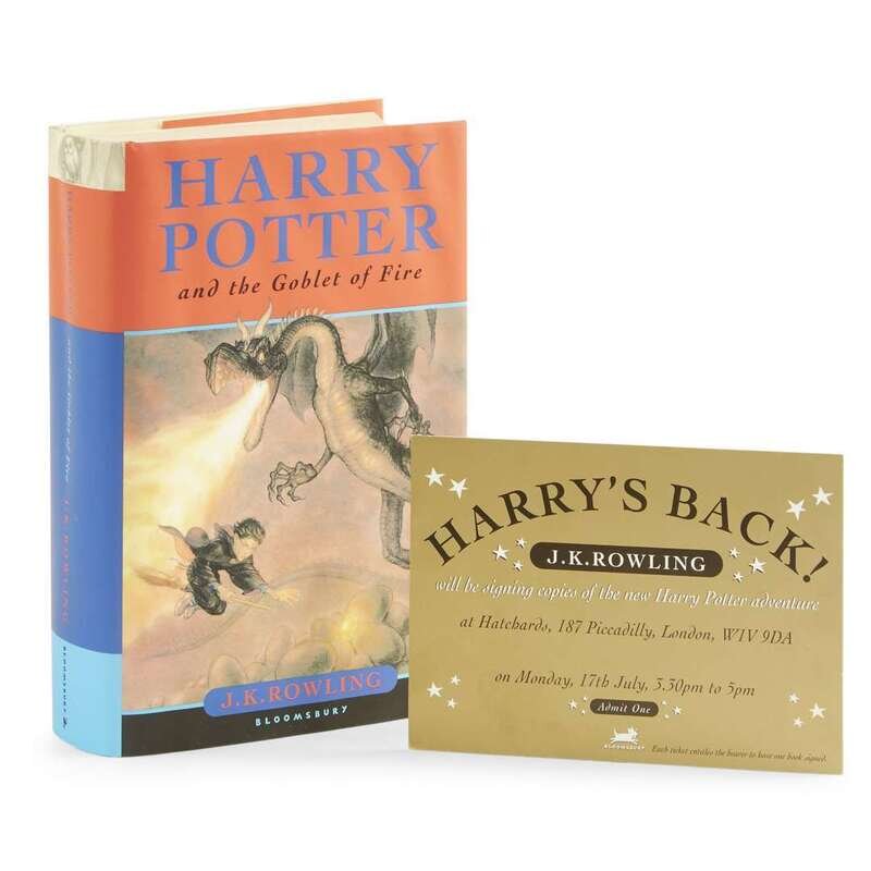 London: Bloomsbury, 2000. First edition, first printing. 8vo. Signed by Rowling in blue ink to dedication page. Publisher's pictorial paper-covered boards; text block lightly toned; in matching pictorial dust-jacket; promotional book signing ticket laid in.