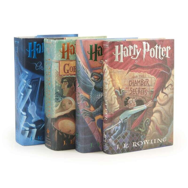 Including: 1. Harry Potter and the Chamber of Secrets New York: Scholastic, 1999. First American edition, first printing without "Year 2" on the spine (this was added in later printings). 8vo. Publisher's quarter green cloth over blue diamond-patterned paper-covered boards; in original pictorial dust-jacket. Errington A2(c) 2. Harry Potter and the Prisoner of Azkaban New York: Scholastic, 1999. First American edition, first printing. 8vo. Publisher's quarter purple cloth over teal diamond-patterned paper-covered boards; in original pictorial dust-jacket. Errington A7(b) 3. Harry Potter and the Goblet of Fire New York: Scholastic, 2000. First American edition, first printing. Publisher's quarter black cloth over orange diamond-patterned paper-covered boards; in original pictorial dust-jacket, top edge with slight wrinkling. Errington A9(aa) 4. Harry Potter and the Order of the Phoenix New York: Scholastic, 2003. First American edition, first printing. Publisher's quarter gray cloth over blue diamond-patterned paper-covered boards; in original pictorial dust-jacket. Errington A12(aaa).