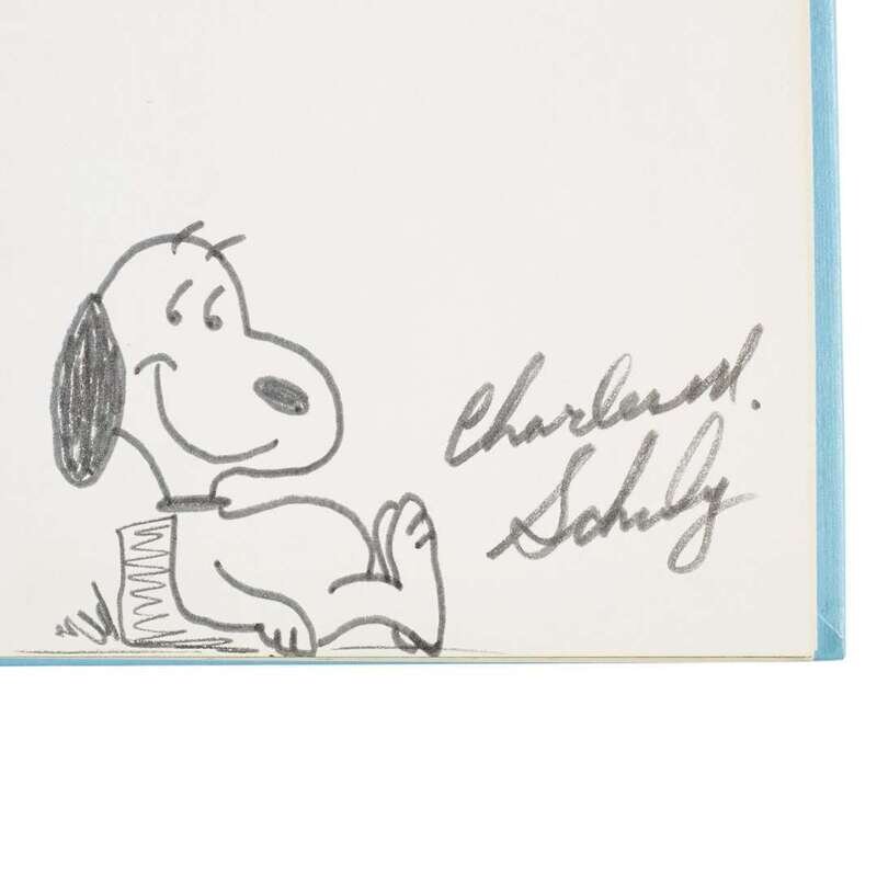 New York: World Publishing/Times Mirror, (1973). First printing. Oblong 8vo. Illustrated linen-covered boards. Signed by Schulz on half-title with an original Illustration of Snoopy.