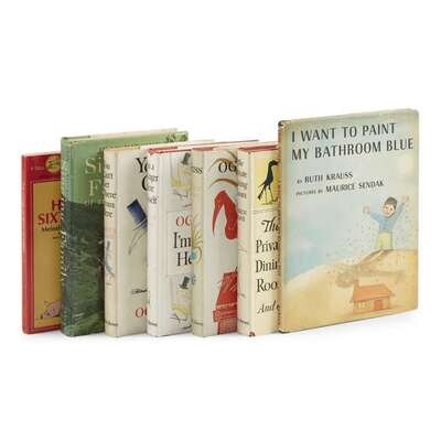 Including: 1. Ritchie, Jean. Singing Family of the Cumberlands. New York: Oxford University Press, 1955. First printing. 8vo. Publisher's green cloth, in original dust-jacket. Hanrahan A20 2. Dejong, Meindert. The House of Sixty Fathers. (New York: Dell, 1969). Reprint. 8vo. Pictorial wrappers. Hanrahan A21 3. Krauss, Ruth. I Want to Paint my Bathroom Blue. New York: Harper & Brothers, 1956. First edition. 4to. Publisher's cloth-backed pictorial boards, in the original dust-jacket with chipping to spine head, inscribed by Krauss. Hanrahan A22 4. Nash, Ogden. You Can't Get There From Here. Boston: Little, Brown and Company, (1957). First edition. 8vo. Publisher's orange cloth, in original dust-jacket. Hanrahan A29 5. Nash, Ogden. The Private Dining Room. Boston: Little, Brown and Company, (1953). 8vo. Publisher's cloth, price-clipped dust-jacket. Hanrahan A29 6. Nash, Ogden. Versus. Boston: Little, Brown and Company, (1949). 8vo. Publisher's cloth, price-clipped dust-jacket. Hanrahan A29 7. Nash, Ogden. I'm A Stranger Here Myself. Boston: Little, Brown and Company, (1938). 8vo. Publisher's cloth, price-clipped dust-jacket. Hanrahan A29.