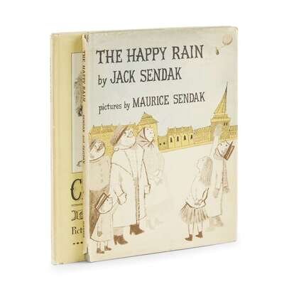 Sendak, Jack. The Happy Rain. New York: Harper & Brothers, 1956. First edition. 4to. Publisher's blue cloth, stamped in yellow, with moderate spotting to top and bottom edges; in original pictorial dust-jacket with original price of $2.50 present, with a sticker to front flap also marked $2.50, with wear to extremities including slight loss to spine ends. Hanrahan A24 with Sendak, Jack. Circus Girl. New York: Harper & Brothers, 1957. First edition. 4to. Publisher's beige cloth, stamped in pink; in the original pictorial dust jacket, price-clipped and with slight loss to spine ends and a few short closed tears to edges. Hanrahan A27.