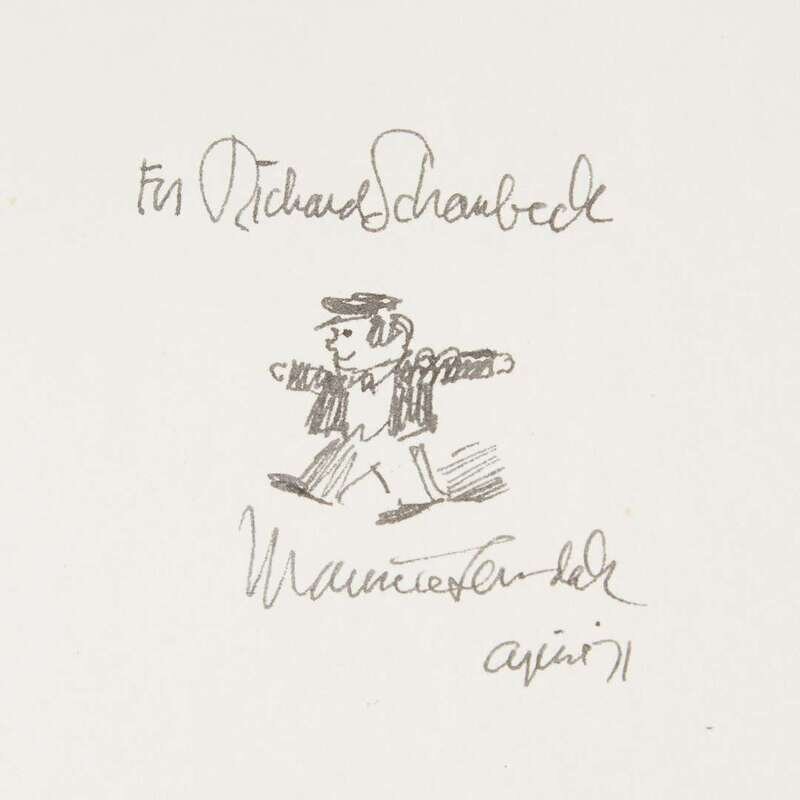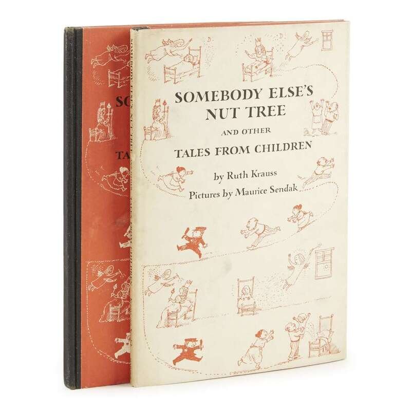 New York: Harper & Brothers, (1958). Dust-jacket corresponds to all first edition points listed by Hanrahan, but is price-clipped. 4to. Signed and inscribed by Sendak with an original drawing on front free endpaper. Publisher's cloth-backed pictorial boards and original dust-jacket, price-clipped and with light toning to extremities. With: Somebody Else's Nut Tree and Other Tales from Children. New York: Harper & Brothers, (1958). Early reprint. 8vo. Publisher's cloth-backed pictorial boards, lacking dust-jacket. Hanrahan A31.