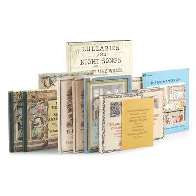 Including: 1. Jarrell, Randall. The Bat-Poet New York: The Macmillan Company, (1964). With all first edition points except price on dust-jacket, which has been clipped. 8vo. Publisher's cloth; in original dust-jacket. Including a sixth printing of same; in original dust -jacket. Hanrahan A60. 2. Stockton, Frank R. The Bee-man of Orn New York: Holt, Rinehart and Winston, (1964). First edition. Square 8vo. Publisher's cloth-backed pictorial boards; in original dust-jacket with moderate rubbing to front panels. Hanrahan A61 3. Stockton, Frank R. The Bee-Man of Orn New York: Holt, Rinehart and Winston (1971). Later edition. Square 8vo. Inscribed by Sendak to half-title with a drawing of the Bee-Man. Publisher's pictorial wrappers. Hanrahan A61. 4. Wahl, Jan. Pleasant Fieldmouse New York: Harper & Row, (1964). First edition. 4to. Publisher's pictorial boards, rear board with three rough punctures; in original dust-jacket with $2.95 price intact. Hanrahan A62. 5. Wilder, Alice. Lullabies and Night Songs New York: Harper & Row, (1965). First edition. Folio. Publisher's cloth; in original dust-jacket with $6.95 price intact. Hanrahan A63. 6. Jarrell, Randall. The Animal Family New York: Random House, (1965). First edition. 12mo. Inscribed by Sendak to front free endpaper. Publisher's cloth; in original dust-jacket; Rosenbach invitation laid in. Also with early reprint in dust-jacket. Hanrahan A64. 7. [Sendak, Maurice]. Hector Protector, and As I Went Over the Water New York: Harper & Row, (1965). First edition. Publisher's cloth-backed pictorial boards; lacking original dust-jacket. Including a second copy of same. Hanrahan A65. 8. Singer, Isaac Bashevis. Zlateh the Goat, and Other Stories New York: Harper & Row, (1966). Early edition. 8vo. Publisher's cloth; in original dust-jacket with price of $8.95, closed tear to top edge of front panel.