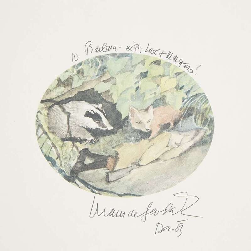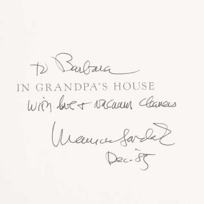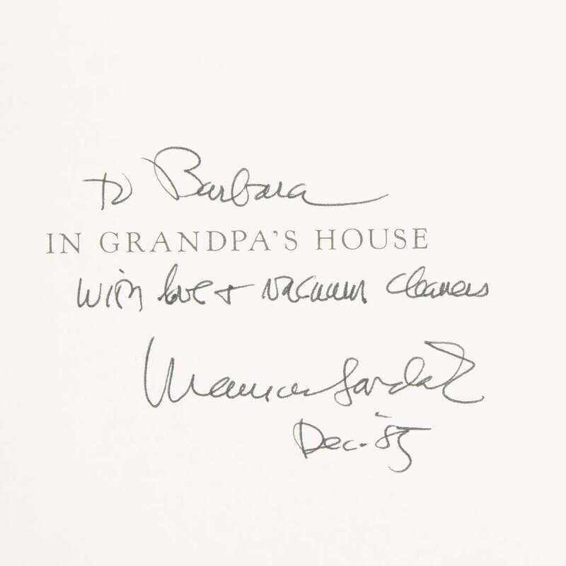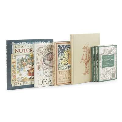 Including: 1. Corsaro, Frank. The Love for Three Oranges, The Glyndebourne Version New York: Farrar, Straus & Giroux, 1984. First American Edition. Publisher's tan pictorial cloth, lacking dust-jacket. [Hanrahan A118] 2. Hoffman, E. T. A. Nutcracker. New York: Crown Publishers, 1984 First edition. Square 4to. Publisher's blue cloth, in the original dust-jacket, price-clipped. Hanrahan A119. 3. Tesnohlidek, Rudolf. The Cunning Little Vixen New York: Farrar, Straus & Giroux, (1985). First trade edition. 4to. Inscribed by Sendak to half-title. Publisher's green cloth, in the original pictorial dust-jacket. Hanrahan A123 4. Sendak, Philip. In Grandpa's House New York: Harper & Row, 1985. First edition. 8vo. Inscribed by Sendak. Publisher's brown cloth; in the original pictorial dust-jacket. Including an unsigned first edition in dust-jacket, and an early edition in dust-jacket. Hanrahan A125 5. Grimm, Wilhelm. Dear Mili New York: Farrar, Straus & Giroux, 1988. First edition. Translated by Ralph Manheim. Oblong 4to. Publisher's blue-gray cloth; in the original pictorial dust-jacket. Hanrahan A130.