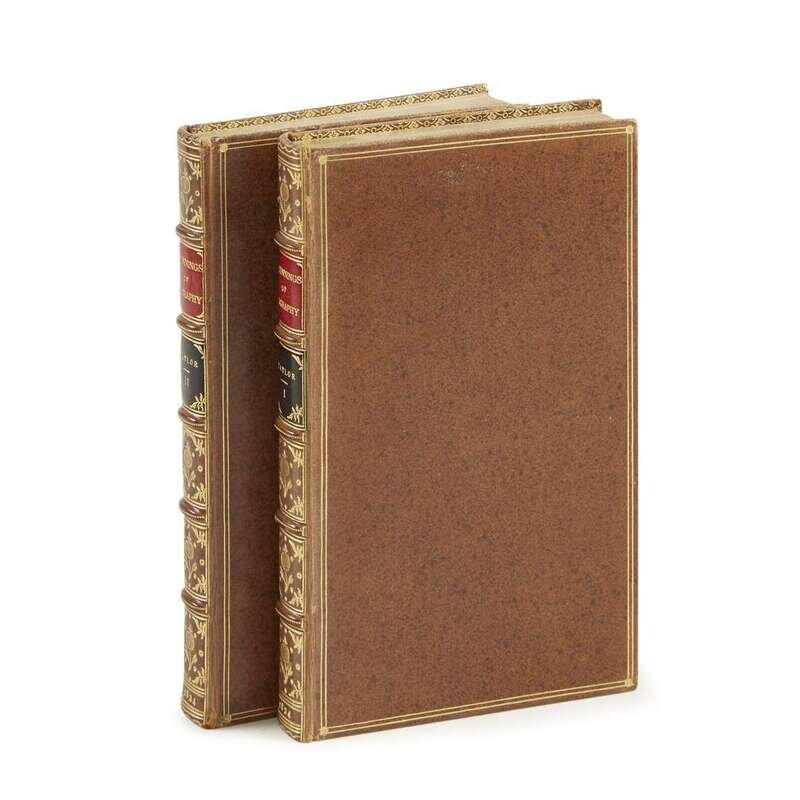 London: J. Harris and Son, 1824. In two volumes. 12mo. Illustrated with 48 hand-colored engravings on 24 sheets. With 2 pp. ads. at rear of the first volume. Early to mid 20th century full polished speckled brown calf, richly stamped in gilt, red and black morocco spine labels, corners, joints, and spine ends scuffed; all edges gilt; gilt dentelles, marbled endpapers; by Wallis.