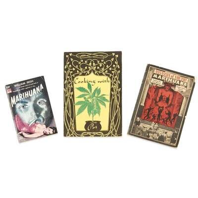 Location varies, 1941-ca. 1960s. Size and condition varies. Including: 1. Irish, William (Woolrich, Cornell). Marihuana. New York: Dell Publishing Company, Inc., 1941. First edition in book form. 2. Devine, Robert James. Assassin of Youth! Marihuana. Saint Paul, Minnesota: Northland Publishing House, 1943. First and likely only edition. 3. Cooking With Pot. No place, no date (presumed sometime 1960s). First and likely only edition.