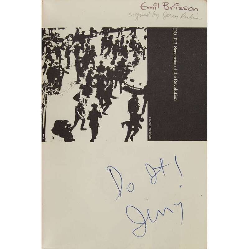 New York: Simon and Schuster, (1970). Fourth printing. 8vo. Signed by Rubin on half-title: "Do it!/Jerry". Original photo-pictorial limp wrappers; very light wear, ownership signature on half-title.