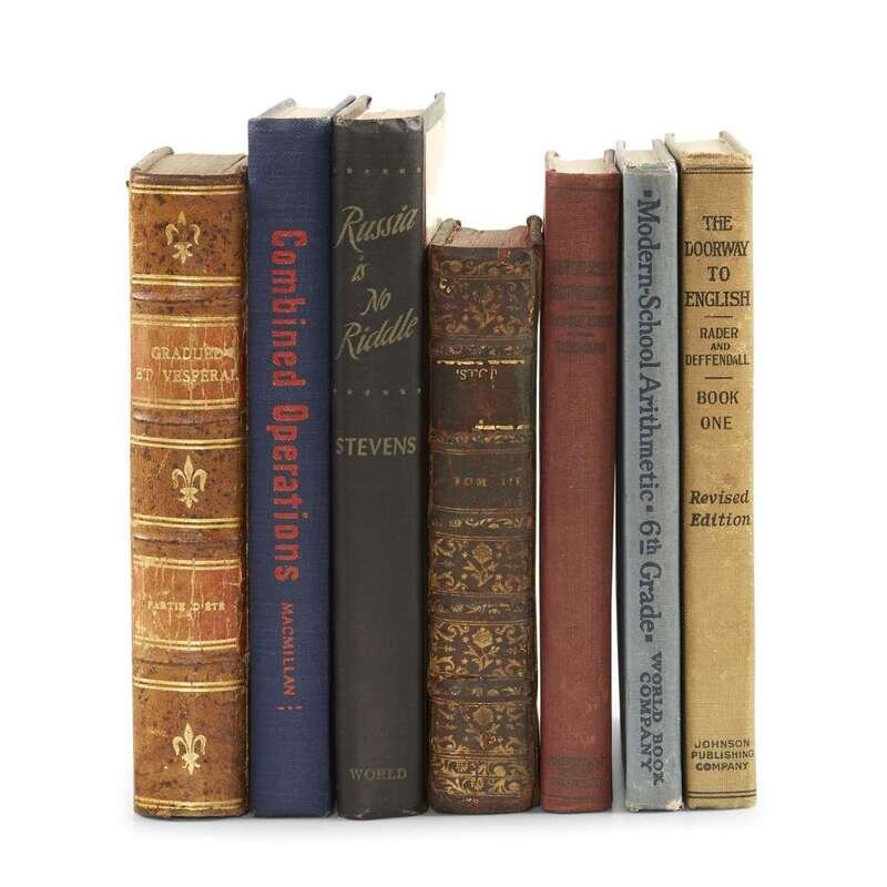 Location and dates vary. Lot includes five gag books—of the type where hot dogs spring forth when opened—and two storage books—of the type where an 18th century French binding might be hiding the family jewels. Size and condition varies.