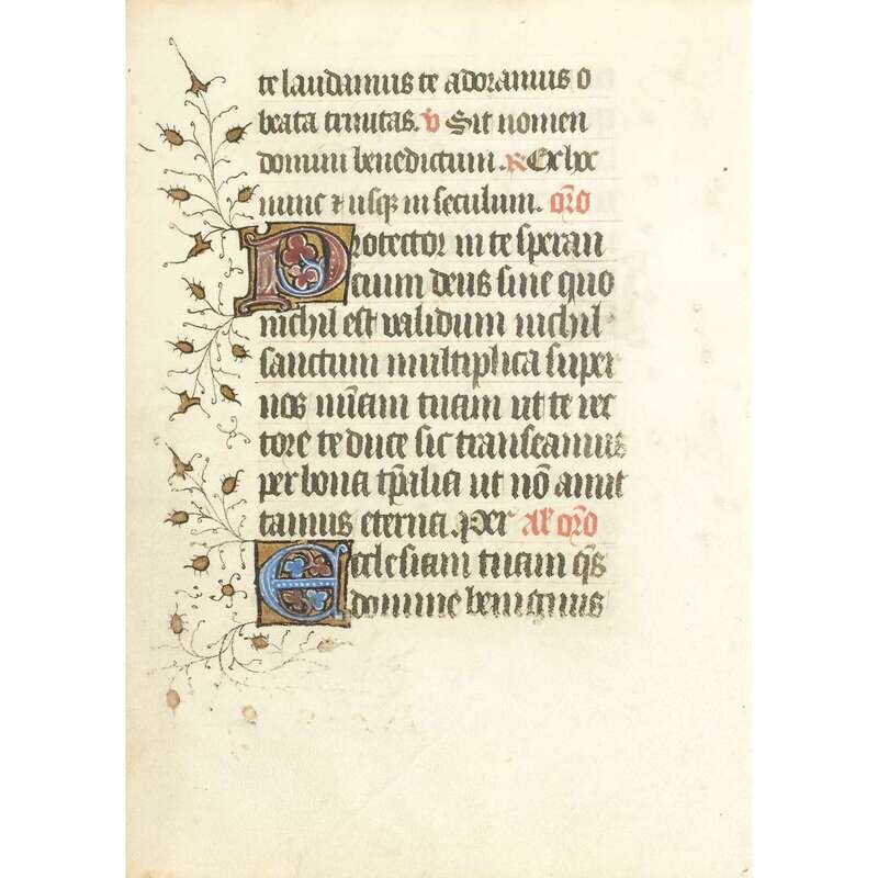 [Early Printing] Illuminated Manuscript on Vellum, 15th Century, a Leaf from the Officium Baetae Mariae Virginis