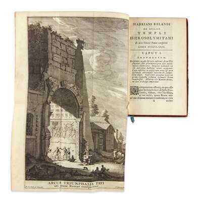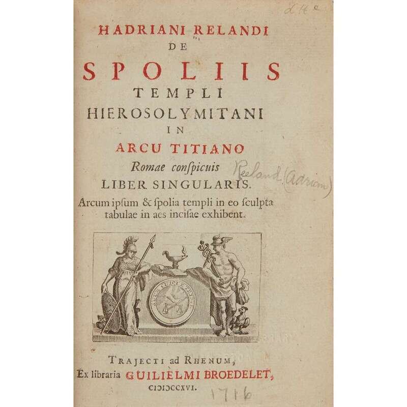 Trajecti ad Rhenum (Utrecht): Ex libraria Guilielmi Broedelet, 1716. First edition. Small 8vo. [4], 138, [24] pp. Illustrated with seven engraved plates (including four folding plates). Contemporary full mottled calf, stamped in gilt, extremities rubbed, boards slightly blistered, spine rubbed, spine ends chipped, repair at foot of spine, paper residue to same, bottom front joint slightly cracked, small wormhole to same, corners worn; edges stained red; marbled endpapers; bottom front hinge slightly cracked, small closed tear and creasing along gutter edge of first folding plate, paper residue from old book-plate on rear free paste-down; from the library of John Stokes, and with his book-plate on front free endpaper, as well as ink stamp, inventory number, and signature on second free leaf. Additional ex-library blind stamp at foot of title-page, call number on second free leaf, and ink stamp and call number at foot of p. (3). Brunet IV: 1204.