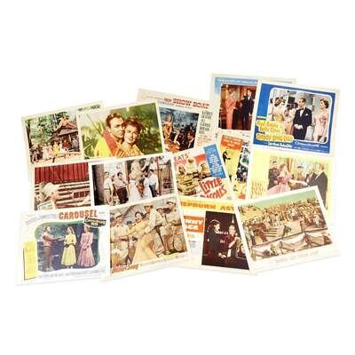 Various places, various dates. All 11 x 14 in. Condition varies. Includes: 1. Annie Get Your Gun (12 including 3 duplicates) 2. Carmen Jones 3. Carousel (3) 4. Daddy Long Legs 5. Dead Ringer (in frame) 6. Desert Song (1953) 7. Desk Set (in frame) 8. Funny Face (2) 9. The King and I (7) 10. Lili (4) 11. The Little Rascals: Free Eats 12. My Friend Flicka 13. Pagan Love Song 14. Ride, Vaquero! 15. Separate Tables 16. Seven Brides for Seven Brothers (4) 17. Show Boat (9 including 1 duplicate) 18. Silk Stockings 19. So This is Love (2) 20. Three Little Words (2) 21. Till The Clouds Roll By 22. Top Hat 23. Where's Charley (2) 24. White Christmas (8).
