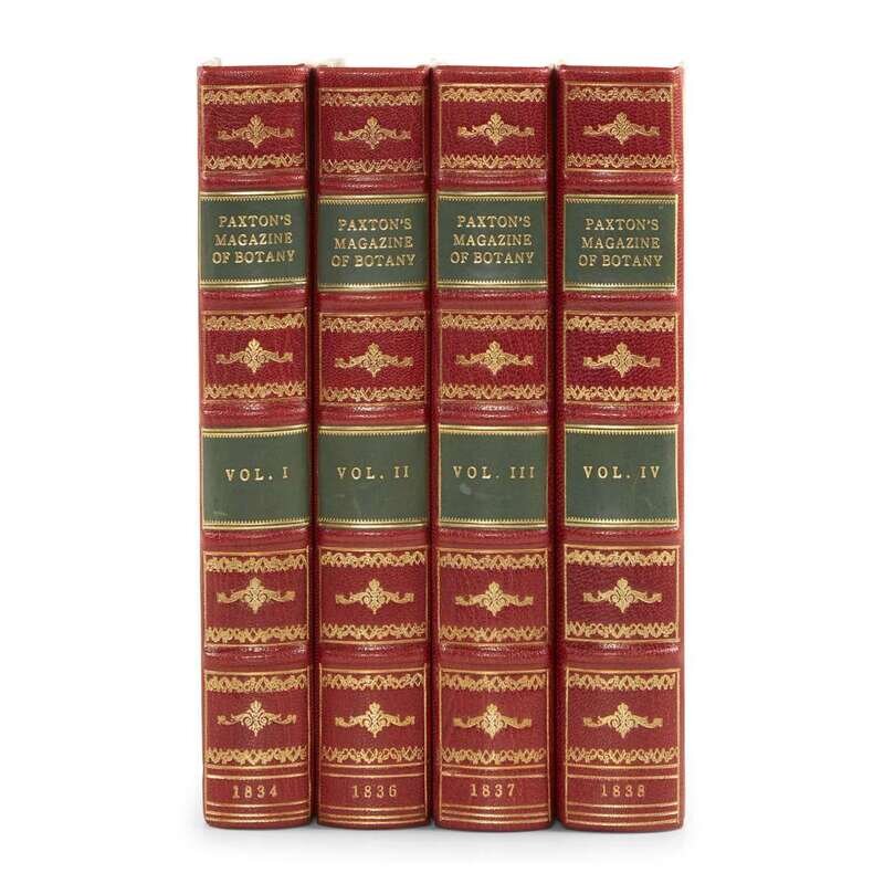 London: Orr and Smith, 1834-1838. In four volumes (Vols. 1-4 only, of 16). First edition. 8vo. Illustrated with 254 hand-colored engraved plates (including 22 double-page plates) and numerous in-text woodcut illustrations; with tissue guards. Modern quarter red morocco over marbled paper-covered boards, spine stamped in gilt, green morocco spine labels; marbled edges; later endpapers. Scattered offsetting from plates; text lightly toned. Nissen BBI 2351; [Stafleu & Cowan 7554].