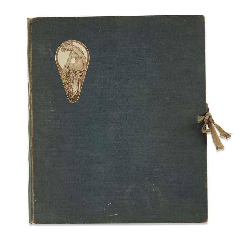 (Presumably Paris, ca. 1900). 4to. Illustrated with 40 leaves of tinted plates, loose as issued, and with type-written title on first plate. Original green cloth, title label on spine, small tinted pictorial label on front cover, silk ties, spine and spine label lightly rubbed, joints and corners rubbed; scattered light soiling to blank margins and versos, a few small chips to edges. OCLC 13033457, locating one complete copy.