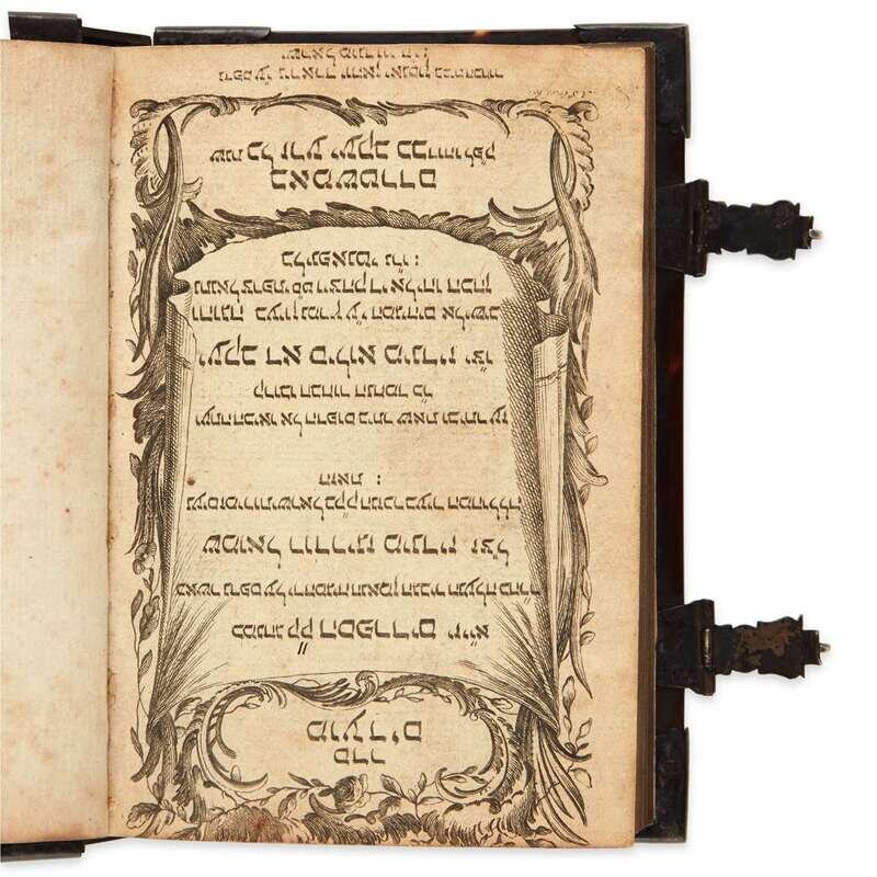 Amsterdam, 1771. Small 8vo. [1], 179, [1] leaves. 'Seder...U-moadim ke-minhag ha-Sephardim' (transcribed from Hebrew). Early to mid 20th century tortise shell boards, silver bosses at corners of covers, silver hinges and clasps, minor wear; all edges gilt; in brown cloth-covered case, one panel of lid broken; trimmed with small losses to printing at head of last several leaves; with book-plate of Nathaniel Lindo on front paste-down.