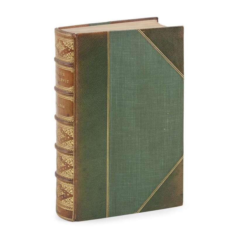 London: Chapman and Hall, 1844. First edition in book form. 8vo. With second state 14-line errata leaf. Illustrated with frontispiece, vignette title-page (Smith's state I, no priority), and 38 engraved plates by H.K. Browne, some plates lightly foxed and toned; with tissue guards. Three-quarter green morocco, stamped in gilt, over green linen-covered boards, spine and some rear sections of morocco faded to brown, small scratches to rear cloth and morocco; top edge gilt, other edges trimmed; marbled endpapers; by Morrell; prelims lightly foxed, small repair at center of vignette title, text lightly toned. Smith I, 7.