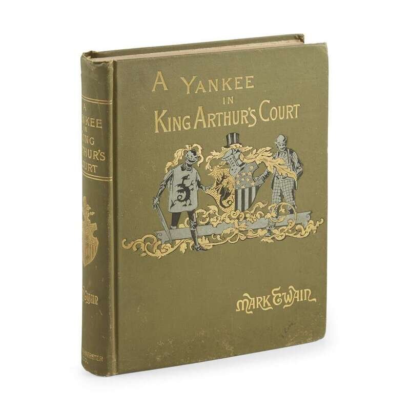 New York: Charles L. Webster & Company, 1889. First edition, first state. With p. (1) blank. Illustrated with frontispiece and numerous full-page plates and illustrations in text. Publisher's decorative olive-green cloth-covered boards, stamped in gilt, black, and grey, minor wear, front and rear boards lightly rubbed, very small ink inscription on front board, spine ends lightly rubbed; all edges trimmed; patterened endpapers; old gift inscription in pencil on second free leaf, text lightly toned. BAL 3429.
