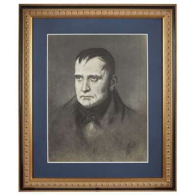 Portrait of Napoleon Signed "**ossa" bottom right Charcoal and white chalk on paper 22 ½ x 18 in., in frame.