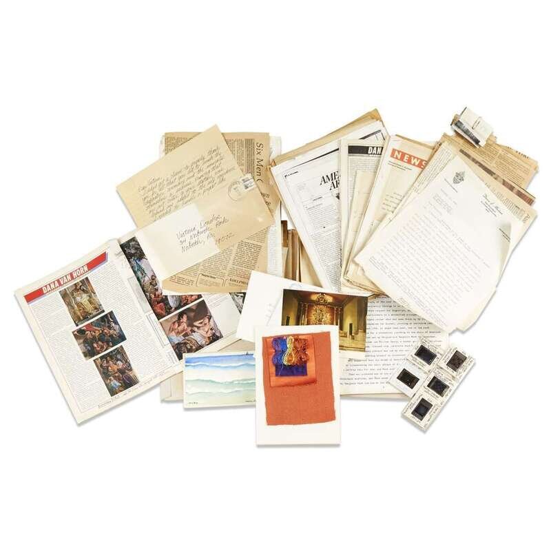 Assembled by Victoria Donohoe, ca 1960-1999. Including: autograph letter, signed by George Nakashima to Donohoe, New Hope, February 1, 1962. 1p. 4to; three typed letters, signed by John Cardinal Krol to Donohoe; three typed letters, signed by Walter H. Annenberg to Donohoe; one typed letter, signed by F. Eugene Dixon, Jr. to Donohoe; one typed letter, signed by Acel Moore to Donohoe; assorted graphic, photographic, manuscript and printed material relating to various liturgical, civic art and architectural projects. Lot also includes material relating to the Archdiocese of Baltimore, Maryland.