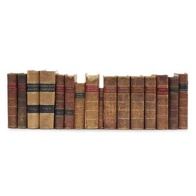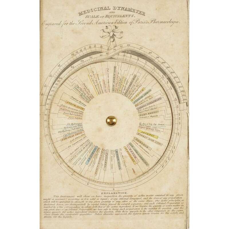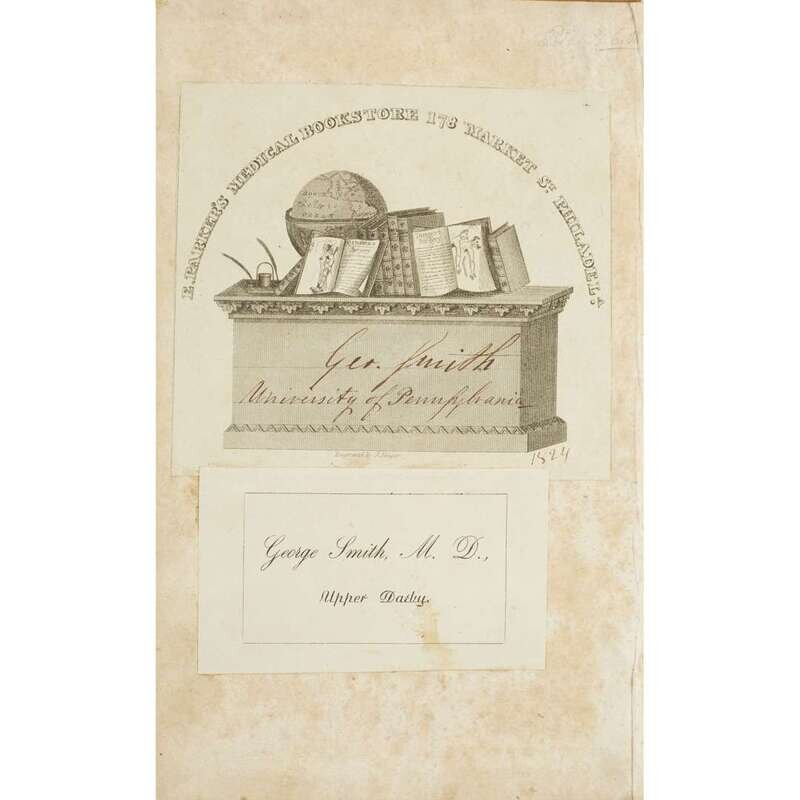 Various places, various dates (1790-1830). Ten titles in 15 volumes. Editions as noted below. 8vo. Condition varies. Most volumes with Smith's book-plate and/or signature, variously dated 1824-26. In its entirety: 1. Bache, Franklin (editor). Elements of Chemistry, Including the Recent Discoveries and Doctrines of the Science. Philadelphia, 1830. Third American edition. 2. Codex Pharmaceuticus… Edinburgi, 1790. First edition. 3. Coxe, John Redman. The American Dispensatory… Philadelphia, 1825. Sixth edition. 4. Fordyce, George. Five Dissertations on Fever. Boston, 1823. Second American edition. 5. Gibson, William. The Institutes and Practice of Surgery… Philadelphia, 1824-5. In two volumes. First edition. 6. Hooper, Robert. Lexicon-Medicum; or Medical Dictionary… Philadelphia, 1824. Second American edition. 7. Paris, J.A. Pharmacologia. New York, 1825. Third American edition. 8. Regnault, M.V. Elements of Chemistry: for the Use of Colleges, Academies, and Schools. Philadelphia, 1852. In two volumes. First edition. 9. Syder, Charles Mingay. A Series of Lectures, on the Most Approved Principles and Practice of Modern Surgery… Boston, 1823. First American edition. 10. Thomson, Thomas. A System of Chemistry, in Four Volumes. London, 1817. Fifth edition. In four volumes. .