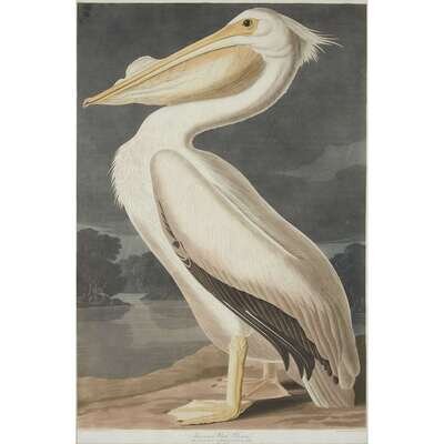 London: R. Havell, 1836. Hand-colored engraving with aquatint and etching. Engraved by R. Havell after J.J. Audubon’s watercolor. Sheet size 37 3/8 x 24 5/8 in. (950 x 625mm). Trimmed within plate mark, plate number trimmed away, bottom of title caption, “Adult Male” shaved, small spotting at the upper left color background, but image otherwise clean and attractive. On J. Whatman watermarked paper, dated 1838. In frame.