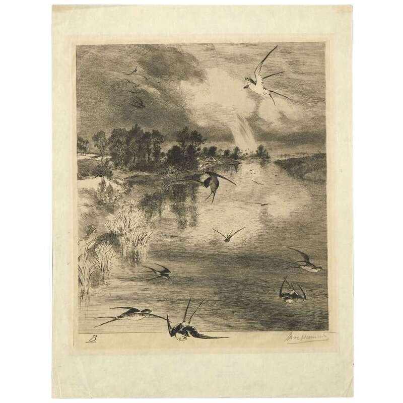 [Prints] Bracquemond, Félix (French, 1833-1914) Les Hirondelles (The Swallows)