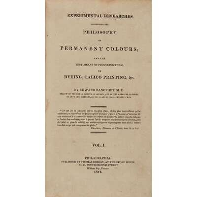 [Textiles] Bancroft, Edward Experimental Researches Concerning the Philosophy of Permanent Colours; And the Best Means of Producing Them, by Dyeing, Calico Printing...