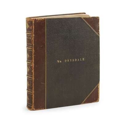 Mauchline, Ayrshire, Scotland: William and Andrew Smith, no date (ca. 1850s). First edition. 4to. Illustrated with 69 mounted color plates of tartans, and one engraved map of the Highlands of Scotland. Contemporary three-quarter brown morocco, stamped in gilt, over dark brown morocco, joints rubbed, corners worn, spine ends rubbed and worn; all edges gilt; prelims sprung, text and plates lightly toned, some scattered chipping and small closed tears to edges of same, some damp wrinkling to plates and text. From the library of William Drysdale, and with his name stamped in gilt on front board, and from the library of John H. Peet, and with his book-plate on rear paste-down.