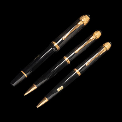 A Montblanc Limited Edition Voltaire Fountain Pen, Rollerball Pen and Mechanical Pencil Set
