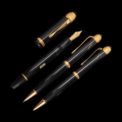 the fountain pen numbered 4380/20000 and having an 18-karat gold M nib, the rollerball pen numbered 4380/13000, the mechanical pencil numbered 4380/12000.