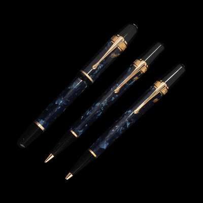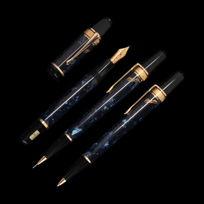 the fountain pen numbered 323/17000 and having an 18-karat gold M nib, the rollerball pen numbered 323/15000, the mechanical pencil numbered 323/3000.