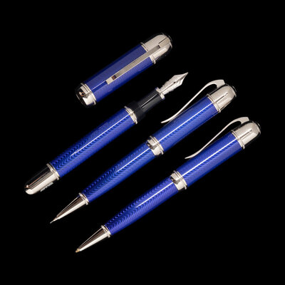 A Montblanc Limited Edition Jules Verne Fountain Pen, Rollerball Pen and Mechanical Pencil Set