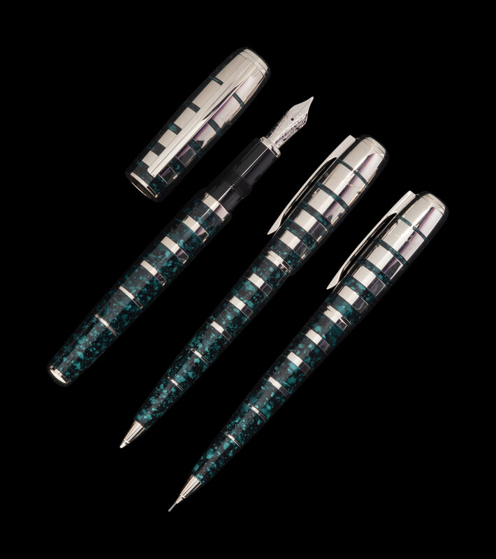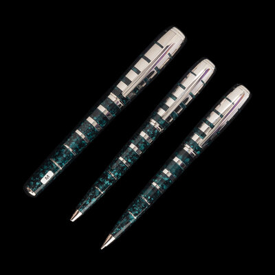 the fountain pen numbered 1661/16000 and having an 18-karat white gold M nib, the rollerball pen numbered 1661/18000, the mechanical pencil numbered 1661/4000.