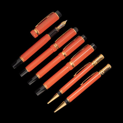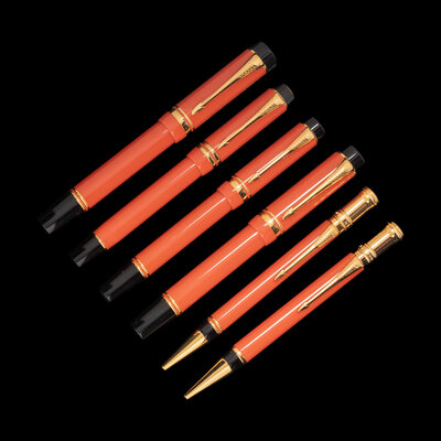 comprising a Limited Edition Duofold Douglas MacArthur Fountain Pen Numbered 1678/1945and having an 18-karat bi-color gold M nib, three Fountain pens and two rollerball pens.