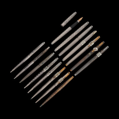 comprising seven fountain pens, seven rollerball pens and one mechanical pencil.