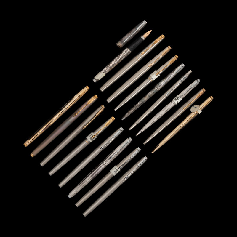 comprising nine fountain pens, seven rollerball pens and one mechanical pencil.