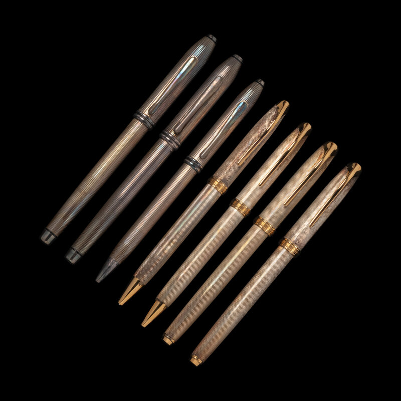 A Group of Seven Cross Sterling Silver Writing Instruments
