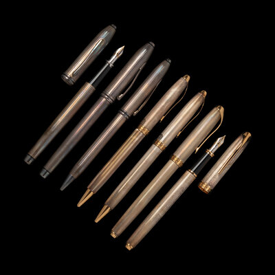 comprising four fountain pens with 18-karat gold nibs and three rollerball pens.