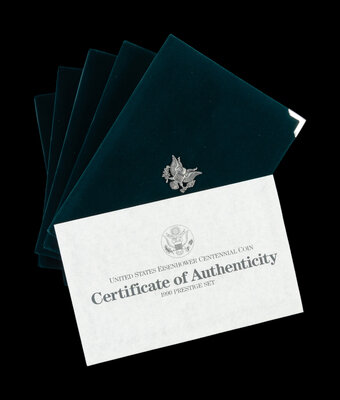 comprising an Eisenhower Centennial commemorative $1, Kennedy 50c, Washington 25c, Roosevelt 10c, Jefferson 5c and Lincoln 1x examples, each having a mint issued display booklet, certificate of authenticity and outer box.