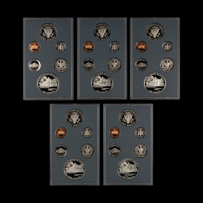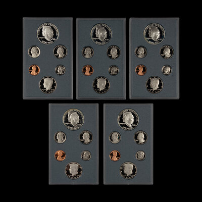 A Group of Five 1990 Prestige Six-Coin Proof Sets
