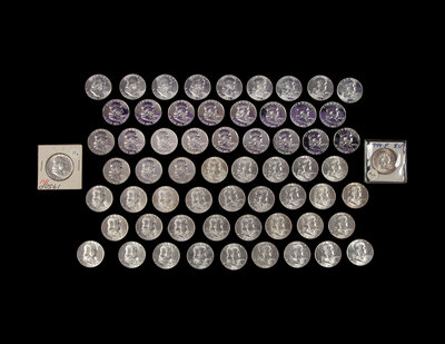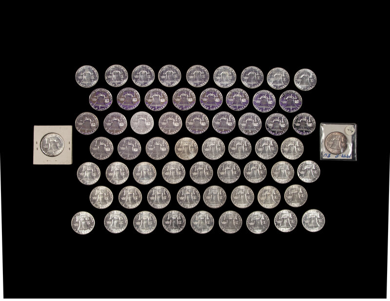 A Collection of Sixty-Two Benjamin Franklin Proof and Mint 50c Coins