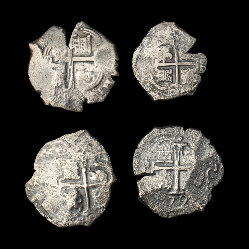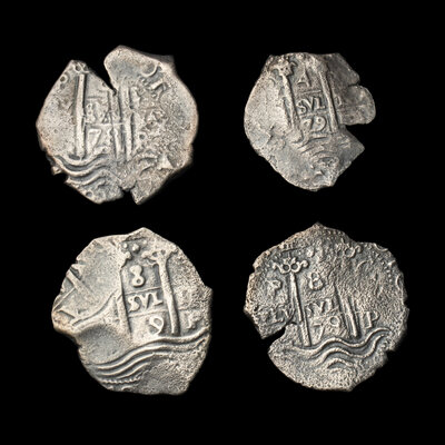 [SPANISH EMPIRE] PORT ROYAL. A Group of Three 1670s 8-Reales and One 1679 4-Reales Coins; 4 Coins total.