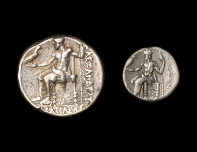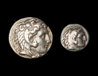[ANCIENT] MACEDONIAN EMPIRE. Alexander III (the Great)(336-323 BC). Ar Tetradrachm (17.1 g) and Ar Drachm (4 g). Two Coins.
