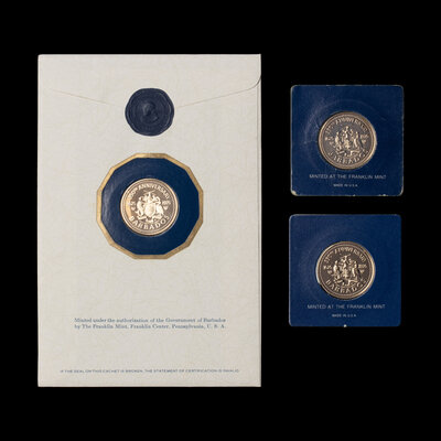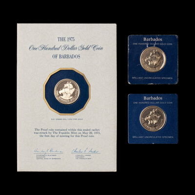 [PRIVATE ISSUE] A Group of Three 1975 Franklin Mint Barbados: 350th Anniversary 12-Karat Gold $100 coins.