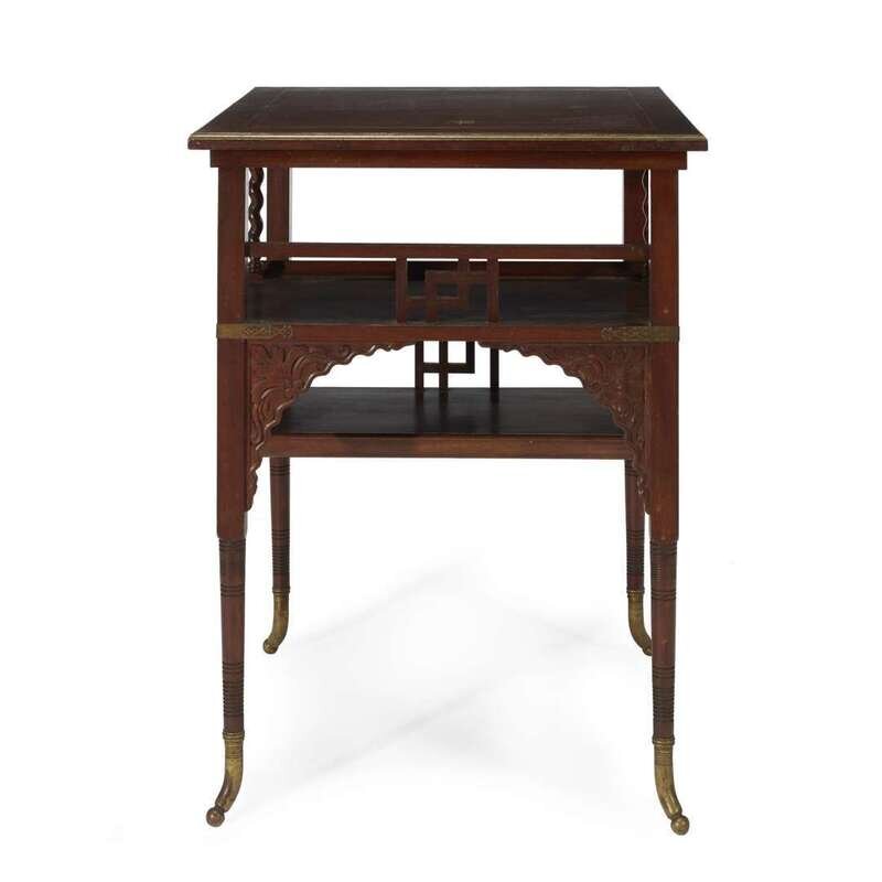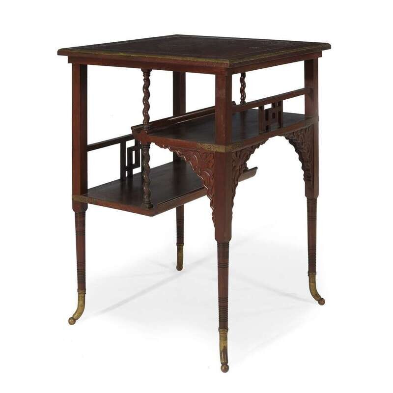 Aesthetic inlaid rosewood multi-tiered table A. & H. Lejambre, Philadelphia, PA, circa 1880